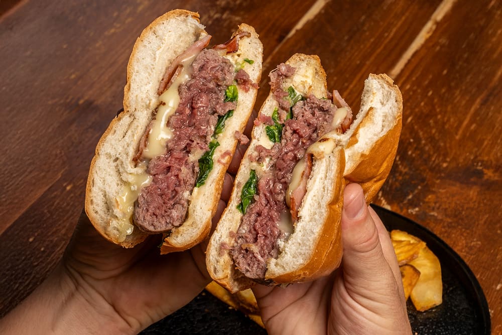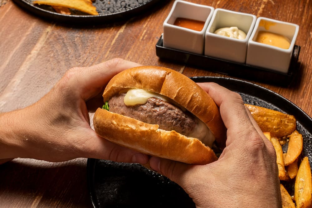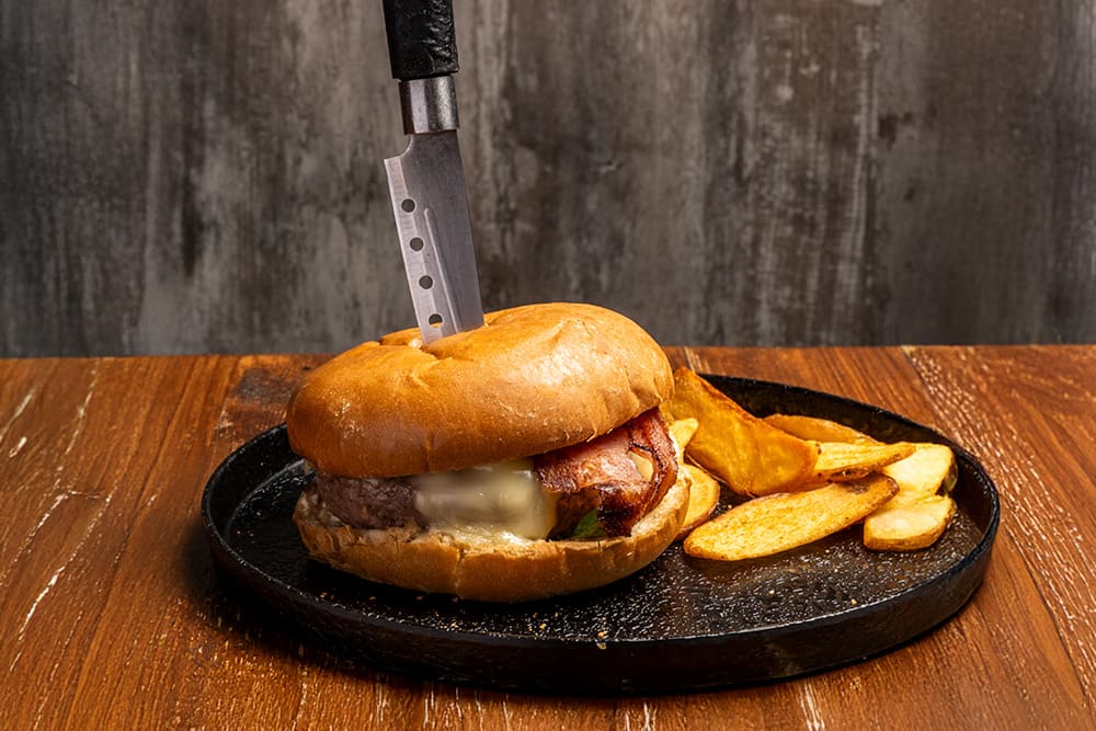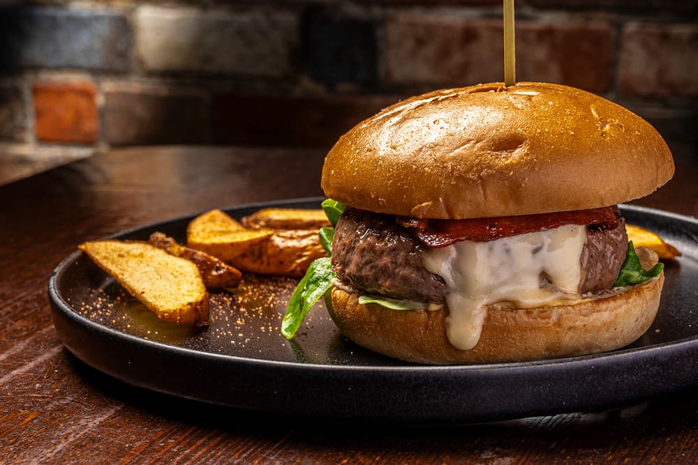 200 g de carne Wagyu, queixo de Arzúa, brotes, bacon e maionesa de mostaza suave