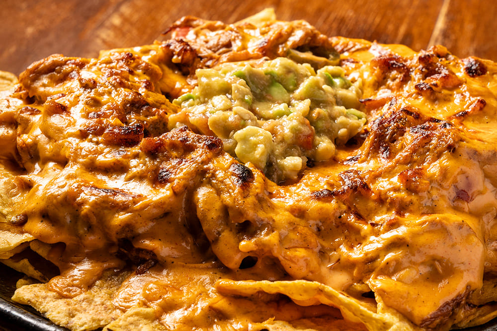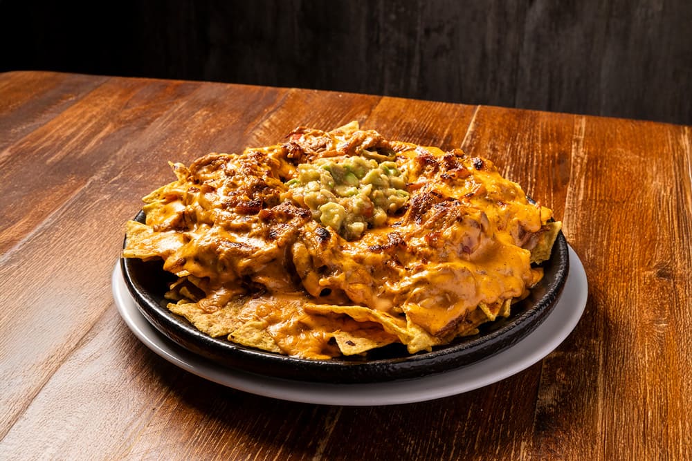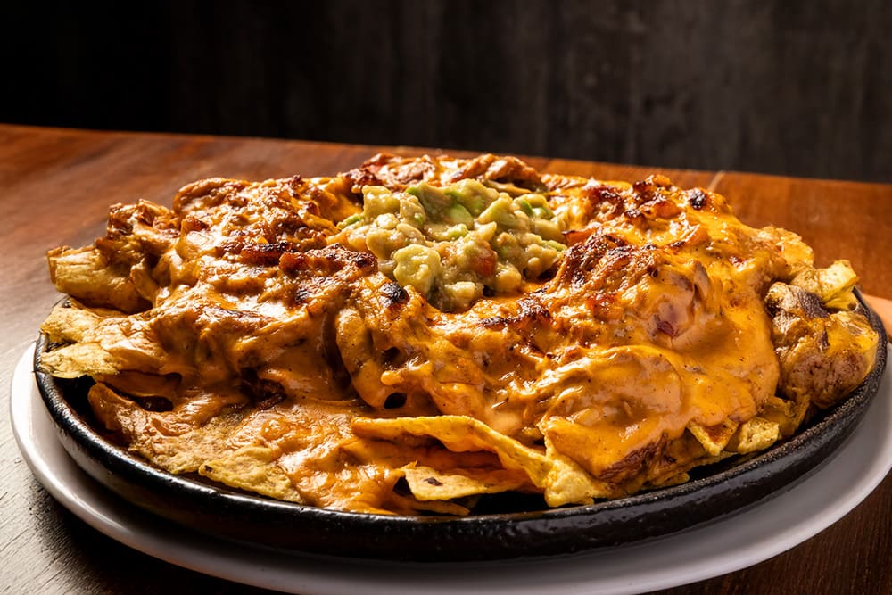 Guacamole, jalapeños, frijol refrito, champiñóns, salsa de queixo e pico de galo.